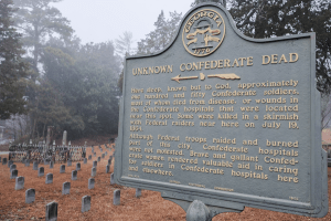 The alleged vandalism occurred as Stone Mountain’s City Council has been considering a proposal by council member Theresa Crowe to relocate a Confederate historical marker from the cemetery to a more prominent location at the intersection of Silver Hill Road and East Ponce De Leon Avenue. The proposal has alarmed many in the 70% African American municipality of Stone Mountain. “There was no reason given,” says former City Councilmember Clint Monroe, “other than they want it in a more prominent place because they want to do Confederate tourism.”