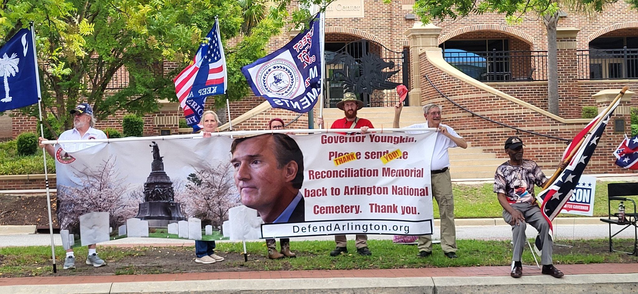 (HK Edgerton) - There he was! Virginia Governor Youngkin, the abject caretaker of the Arlington National Cemetery Reconciliation Memorial Cenotaph Shrine, that had been illegally removed from Arlington Cemetery and handed over to his care, waving at me and those of us assembled.
