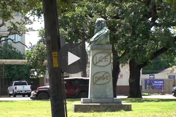 Graffiti including the words “Gaza” and “ICE” appeared Monday on the Confederate-era statue along Tulane Avenue; authorities have not confirmed an investigation.