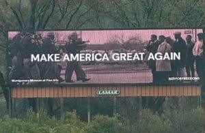 The photo appeared on at least one billboard observed by 1819 News, but other reports state identical billboards are scattered throughout the county, all featuring the name of the Montgomery Museum of Fine Arts (MMFA) pasted at the bottom.