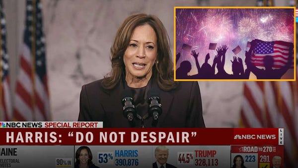While Americans of all ages, races, and socioeconomic backgrounds continued to joyously celebrate Trump's return to power, Harris pleaded with everyone not to give in to any feelings of sorrow and heartbreak.