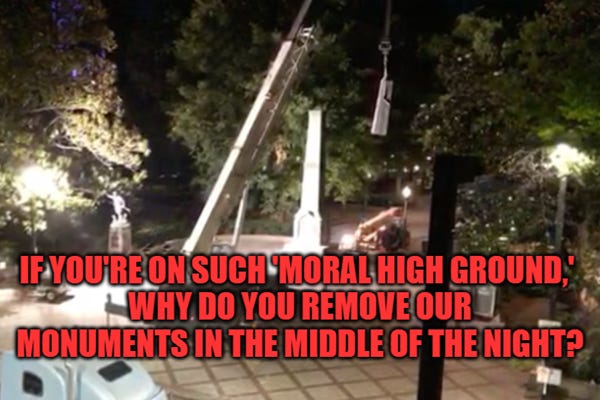 Removing these monuments is just white-hate masquerading as anti-confederate. I think that the ranting anti-white lunatics like Al Sharpton are actually helping to expose this white hating agenda. Keep running your mouth Al!