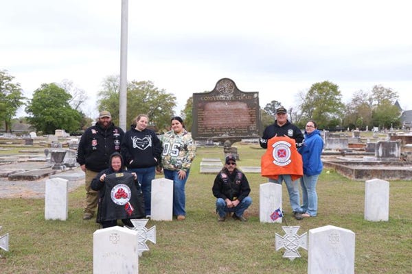 More than 100 flags were placed on graves in Thomaston’s Glenwood Cemetery by members of Sons of Confederate Veterans Mechanized Calvery, 3rd Battalion, Company B, Troop B. Afterward, the group traveled to place flags in cemeteries of Antioch and Shiloh Baptist churches.