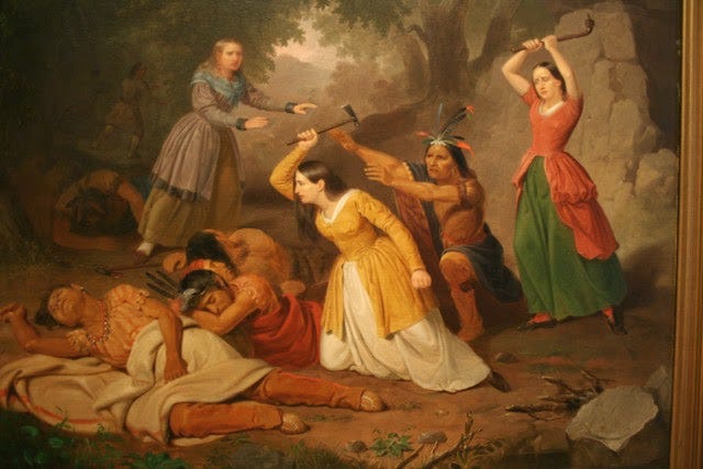 A war party of more than sixty Shawnee warriors attacked farms along the James River in Virginia. At the Dennis family farm they killed Joseph Dennis and his child, then took his young wife, Hannah as a slave along with several other captive white women to the Shawnee village of Chillicothe. After some time, Hannah Dennis gained the trust of the Shawnee and they began to accept her. She eventually escaped and her tale became well known throughout the American colonies. Since that time, numerous novels and movies have been inspired by Hannah Dennis’s ordeal.