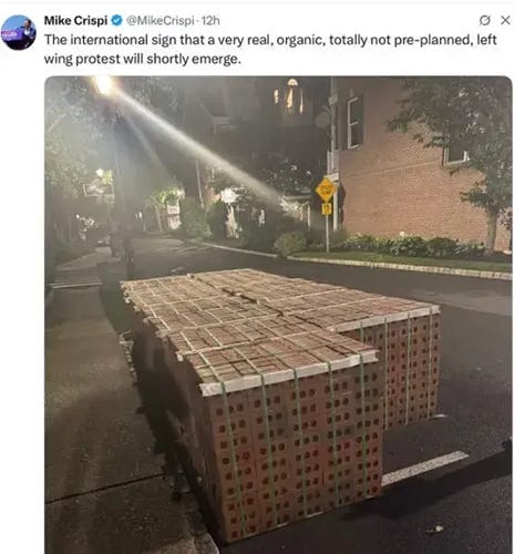 There is much talk about who is paying millions to stage the riots. Which may explain why the protest signage is uniform, why the tactics — hurling bricks and concrete at law enforcement, closing down the 101 Freeway on both sides — is so coordinated.