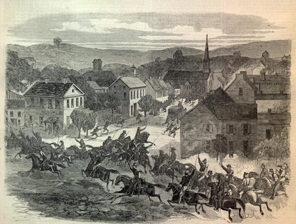 Confederate General John Hunt Morgan’s cavalry raided Cincinnati, Ohio and eastward toward the Ohio River.
