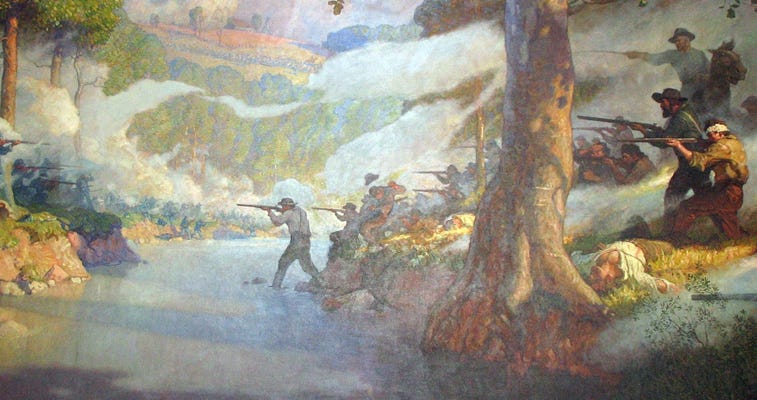 Arkansas, Missouri, Texas, and Cherokee troops commanded by Texas Ranger legend and Confederate General Ben McCulloch stampeded federal and German volunteers at the Battle of Oak Hills in Wilson’s Creek, Missouri.