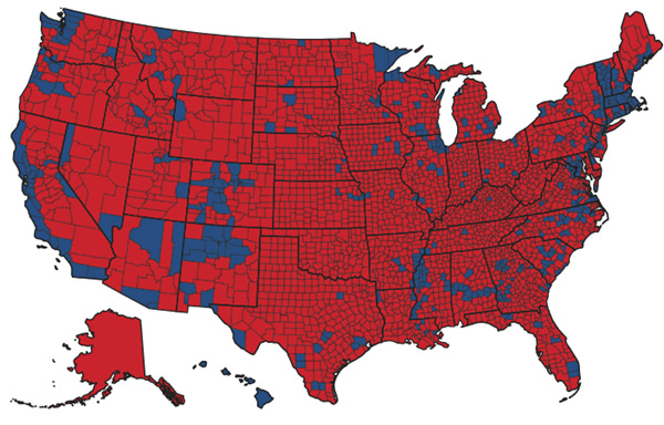 In Texas, he won with 56.2% to Kamala Harris’s 42.4% of the popular vote. Yet, Harris won only 12 counties to Trump’s 242 – an astounding difference that is not reflected at all in the popular vote. Trump’s victory in the county totals comes to 95.3% to Harris’s 4.7%. Such differences should be taken into account in State-wide elections (we will enlarge upon that below).