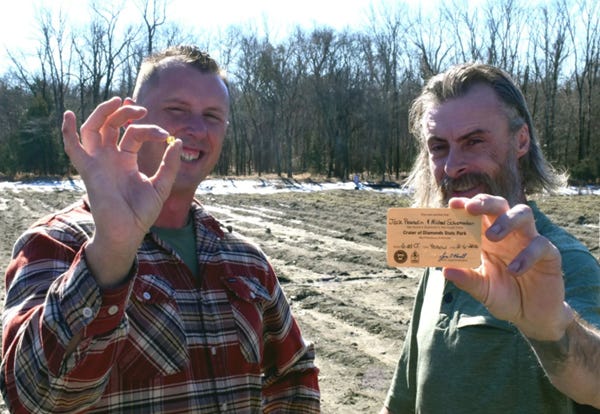It’s been a good year at the Crater of Diamonds as these two gentlemen show, but after at least a dozen trips and I still ain’t found nothin’ but dirt - DD