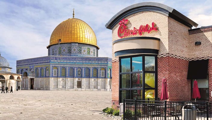 In a possible fulfillment of Biblical prophecy, Chick-fil-A has just opened a new location on the Temple Mount.