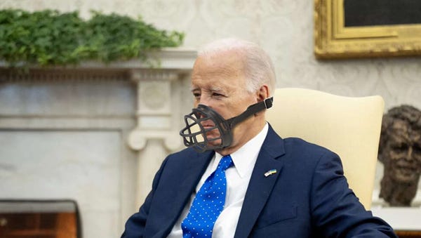 Off the Wall - Biden Fitted With Muzzle So He Can't Bite Any More Babies