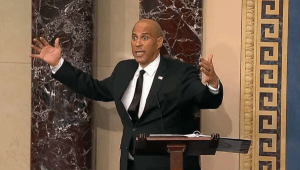 Taking the Senate floor, Booker gave a raw, uncensored demonstration to the American people of the dangers of methamphetamine use, as he stood at a lectern and gave a wild-eyed speech full of flailing appendages, mouth frothing, and unintelligible shouting.