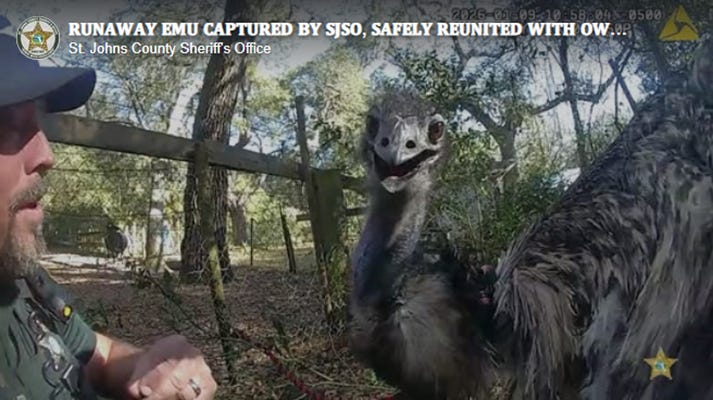 Off the Wall: Florida deputy lassos, handcuffs runaway emu