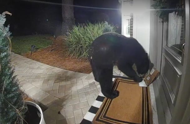 Ring camera captures bear stealing package from Florida front porch