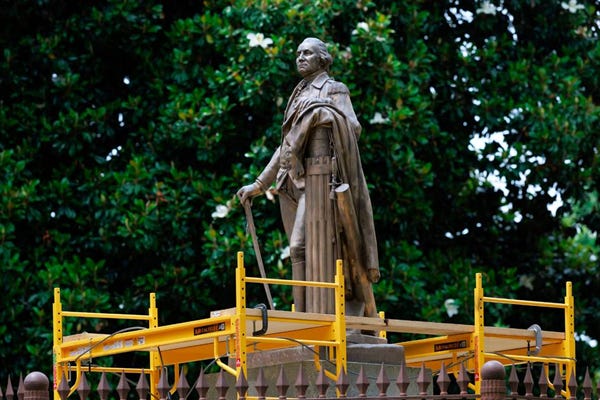 Raleigh’s bronze tribute to George Washington gets a makeover, but you know they'd rather replace him with that OTHER george...