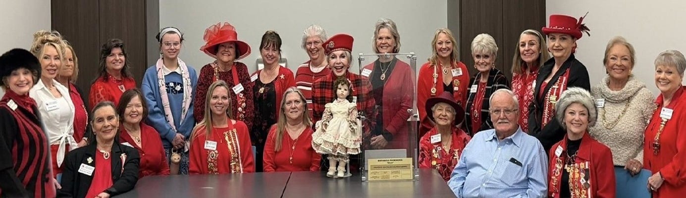 RJOA KAREN DeBerry is the original owner of the Award Winning Doll who donated her, and “MRS. KAREN” is shown in this RJOA group photo in her beautiful RED Chapeau… RED- Of Course!