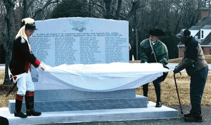The James Monroe Society, Sons of the American Revolution (SAR), on February 1 unveiled the names of 74 Black patriots from the Northern Neck who fought in the Revolutionary War at a dedication of the new monument on the Courthouse Square in Warsaw.