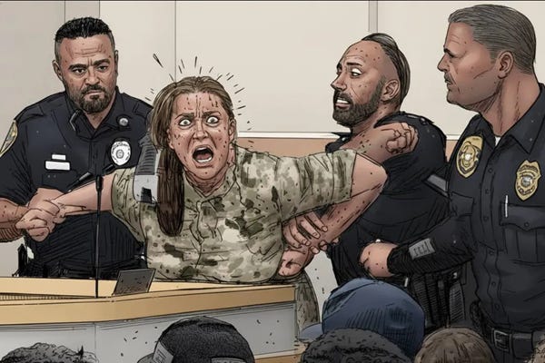 Her remarks quickly escalated. Police moved in to escort her from the chamber, at which point she attempted to bolt for the exit but didn’t make it more than a few steps before being stopped. As the room broke into confusion, she let out one final declaration—shouting that she had, in fact, wet herself—before being taken away.