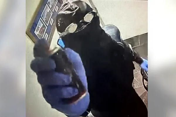 The suspect did not appear to have a weapon and did not "imply" that he had one, the report said. He was caught on camera wearing all black gear, goggles and blue rubber-like gloves.