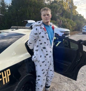 Florida man nabbed allegedly trying to outrun troopers while wearing Dalmatian onesie – Man escaped after being shot with a stun gun twice, authorities say