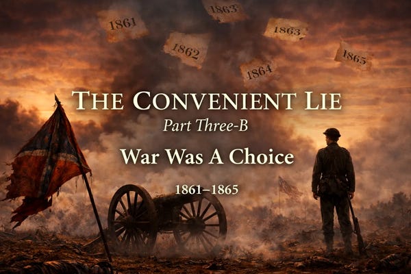 Part Three-A established why the first seven states left. They left because the compact was broken. They formed a government and asked to negotiate. They were refused. This essay covers what Lincoln did next. And what it cost the Southern people.