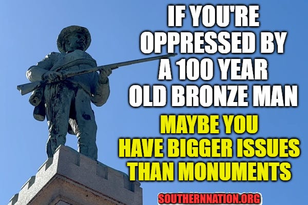 I hope I do not offend too many Abbeville readers to observe that no one group, even Southerners, is insulated from bad behavior and erroneous thinking. It is certainly in the realm of possibility that Dean and his fellow pro-statue collaborators are racist jerks who, as the WaPo obliquely insinuates, intend the statue to communicate to local black residents that they are inferior citizens of our nation. Yet, by that same token, it’s also possible that the anti-statue activists are subject to a widely-prevalent woke groupthink that interprets everything about Southern heritage as necessarily backwards and bigoted.