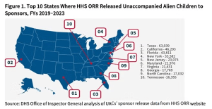 Of the hundreds of thousands of unaccompanied alien children the Department of Health and Human Services transferred to sponsors between fiscal year 2019 and 2023, the majority were sent to 10 states, according to a new report.
